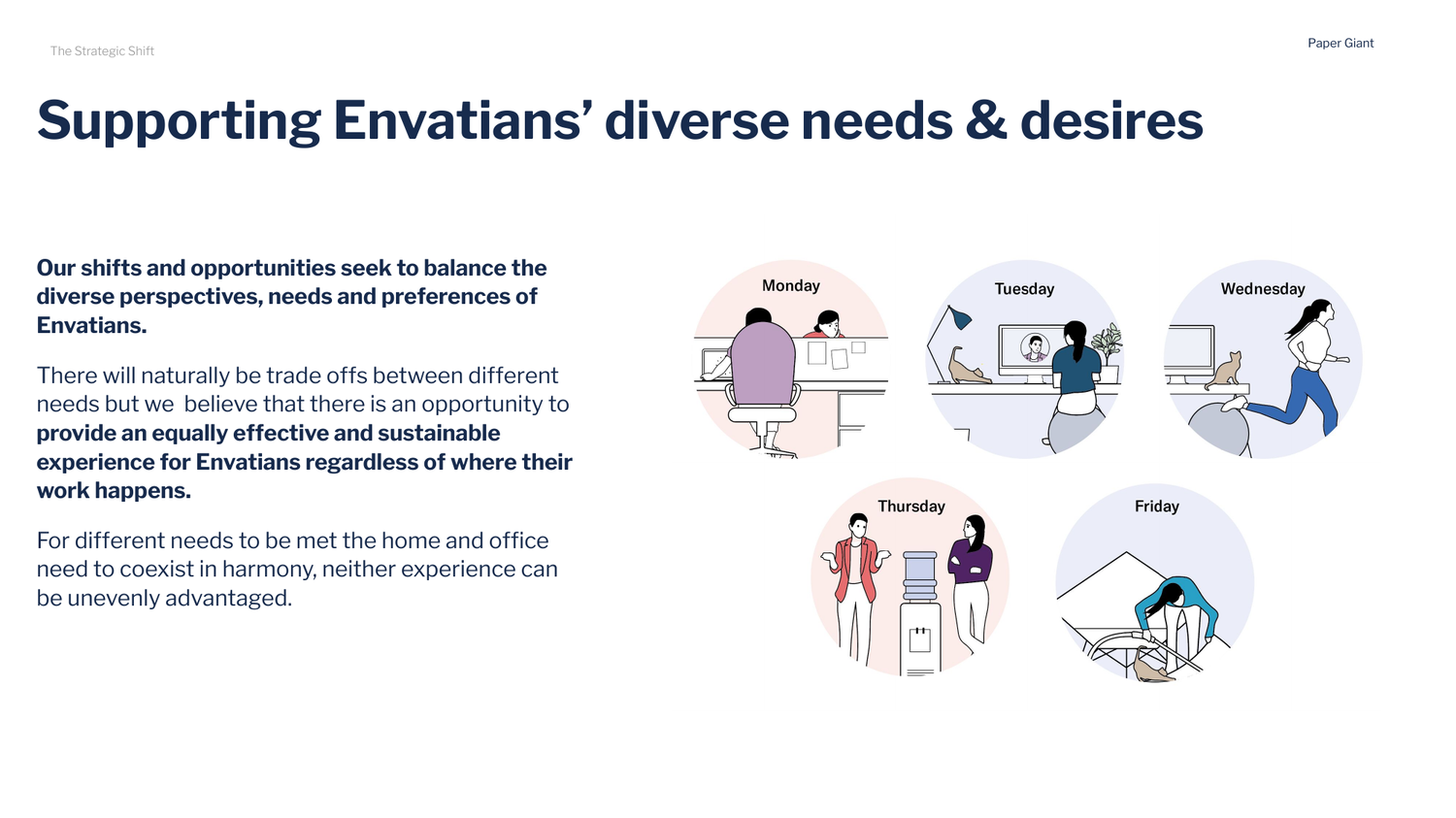 We designed a multi-method study grounded in jobs-to-be-done thinking, spanning Australia, the US, and Europe. Contextual interviews at workplaces including Mind Australia and Cochlear let us observe how teams actually collaborate in situ. Semi-structured interviews with 55 participants explored the jobs they're trying to get done — not just the tasks they complete, but the outcomes they're working toward. And a two-week diary study with 26 participants captured the texture of daily work life: the tools they reach for, the workarounds they've built, and how COVID-19 was reshaping their practices.