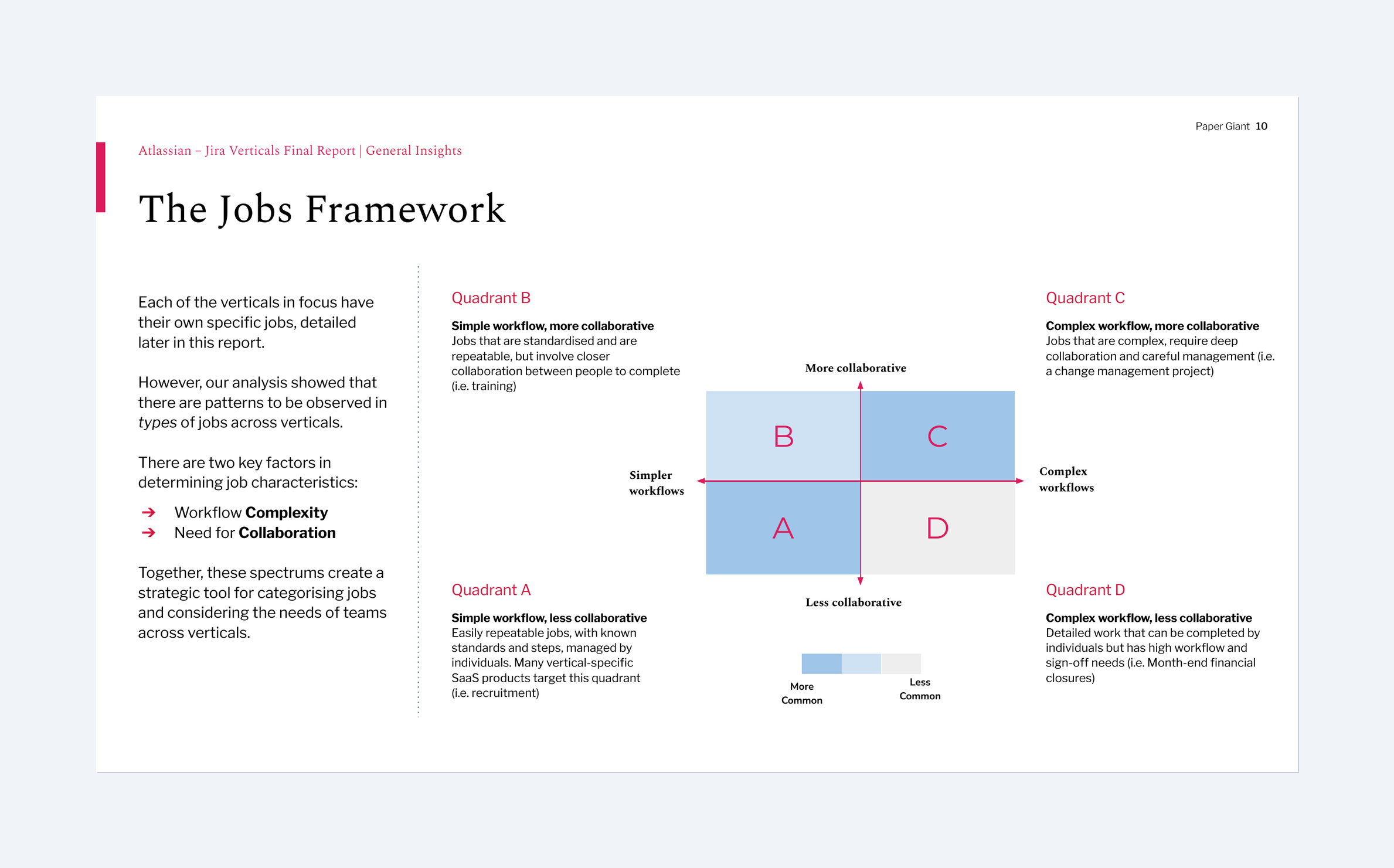 - Created a reusable Job Complexity Framework and enablers/blockers analysis for decision makers