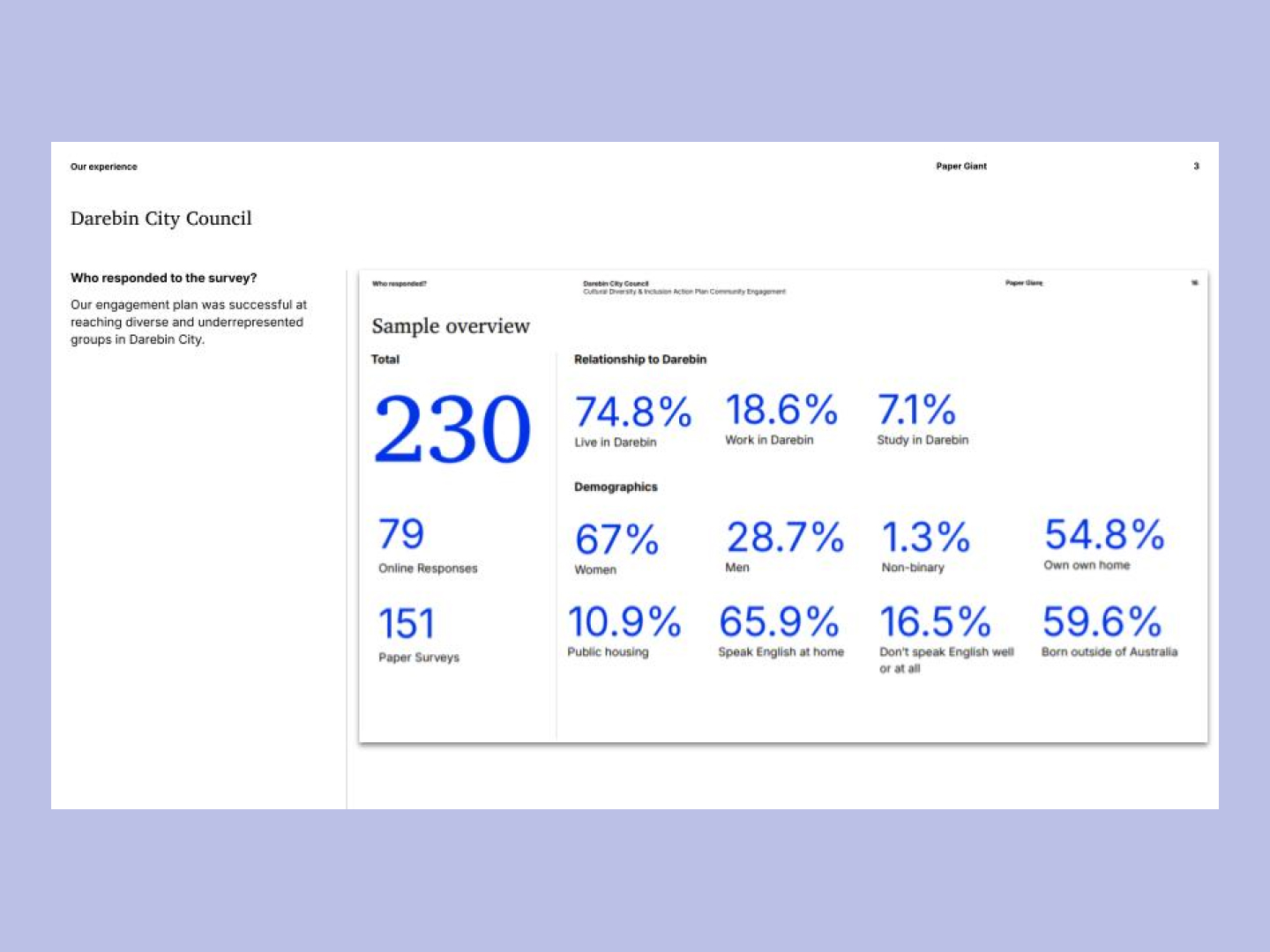 Our engagement plan was successful at reaching diverse and underrepresented groups in Darebin City.